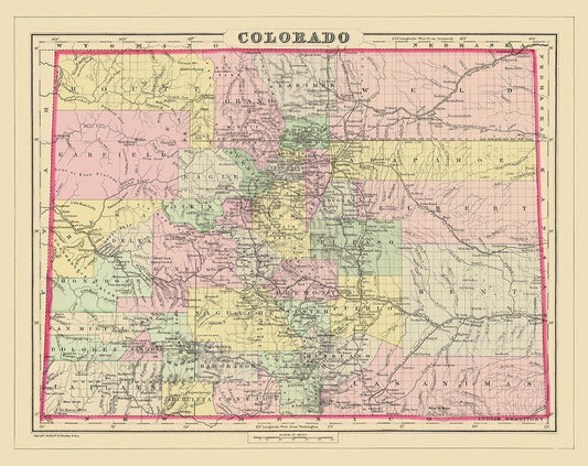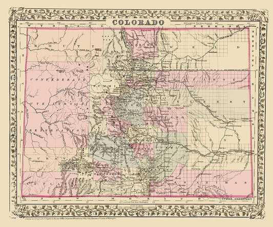 Colorado - USGLO 1866 White Modern Wood Framed Art Print with Double Matting by USGLO
