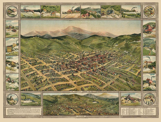 Cripple Creek Colorado - Amerine 1895 White Modern Wood Framed Art Print with Double Matting by Amerine