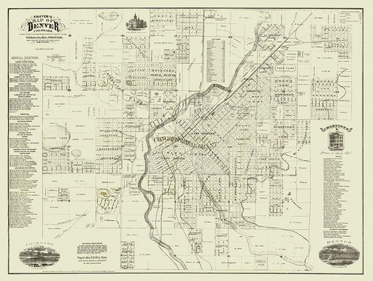 Denver Colorado Landowner - Thayer 1879 White Modern Wood Framed Art Print with Double Matting by Thayer