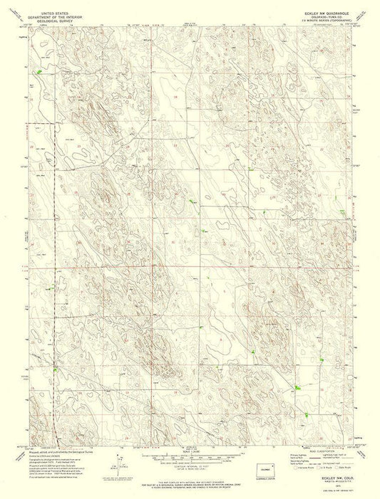 Eckley NW Colorado Quad - USGS 1971 White Modern Wood Framed Art Print with Double Matting by USGS