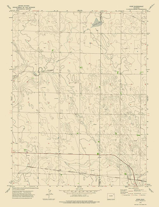 Hyde Colorado Quad - USGS 1972 White Modern Wood Framed Art Print with Double Matting by USGS