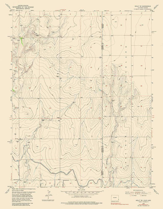 Holly NE Colorado Quad - USGS 1977 White Modern Wood Framed Art Print with Double Matting by USGS