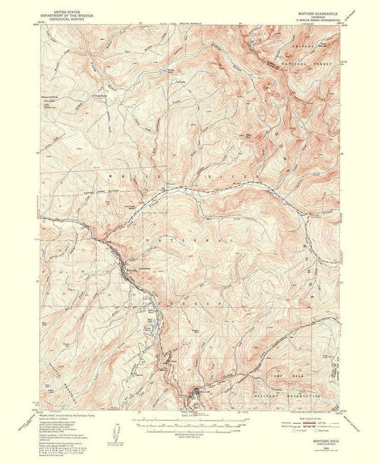 Minturn Colorado Quad - USGS 1954 White Modern Wood Framed Art Print with Double Matting by USGS