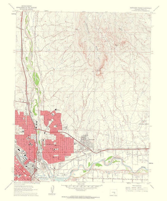 North East Pueblo Colorado Quad - USGS 1963 White Modern Wood Framed Art Print with Double Matting by USGS