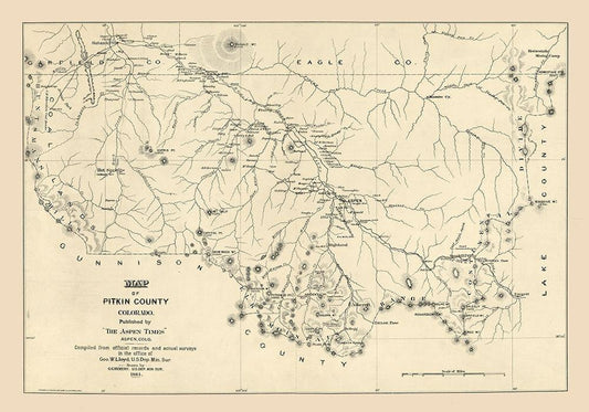 Pitkin County Colorado - Vickery 1884 White Modern Wood Framed Art Print with Double Matting by Vickery