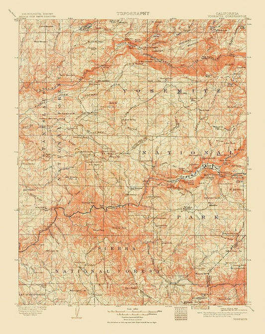 Yosemite California Quad - USGS 1911 White Modern Wood Framed Art Print with Double Matting by USGS