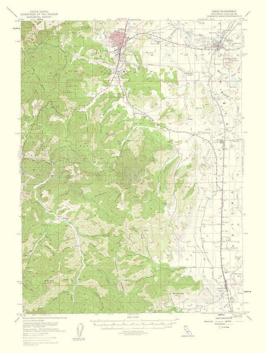 Yreka California Quad - USGS 1956 White Modern Wood Framed Art Print with Double Matting by USGS