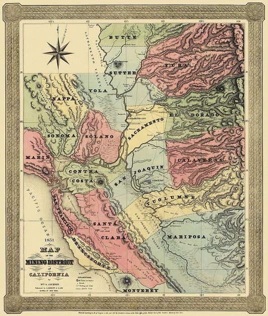 Mining District of California - Jackson 1851 White Modern Wood Framed Art Print with Double Matting by Jackson