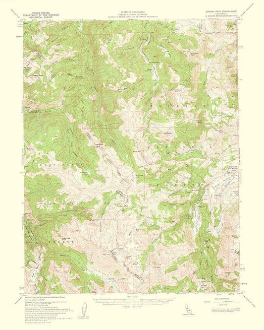 Sonora Pass California Quad - USGS 1961 White Modern Wood Framed Art Print with Double Matting by USGS