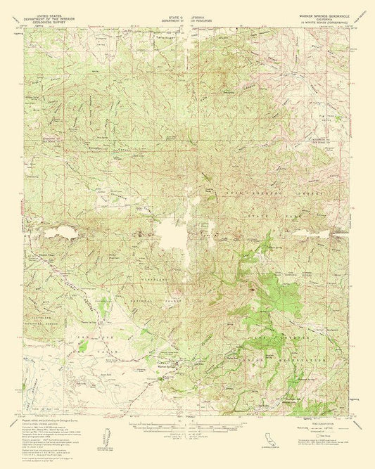 Warner Springs California Quad - USGS 1961 White Modern Wood Framed Art Print with Double Matting by USGS