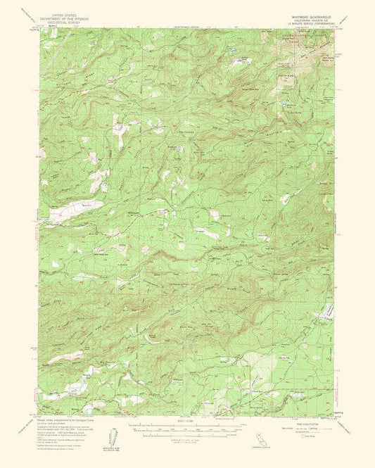Whitmore California Quad - USGS 1956 White Modern Wood Framed Art Print with Double Matting by USGS