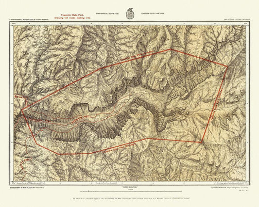 Yosemite California Quad - USGS 1879 White Modern Wood Framed Art Print with Double Matting by USGS