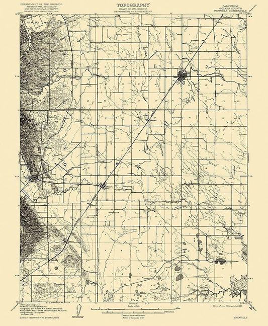 Vacaville California Quad - USGS 1908 White Modern Wood Framed Art Print with Double Matting by USGS