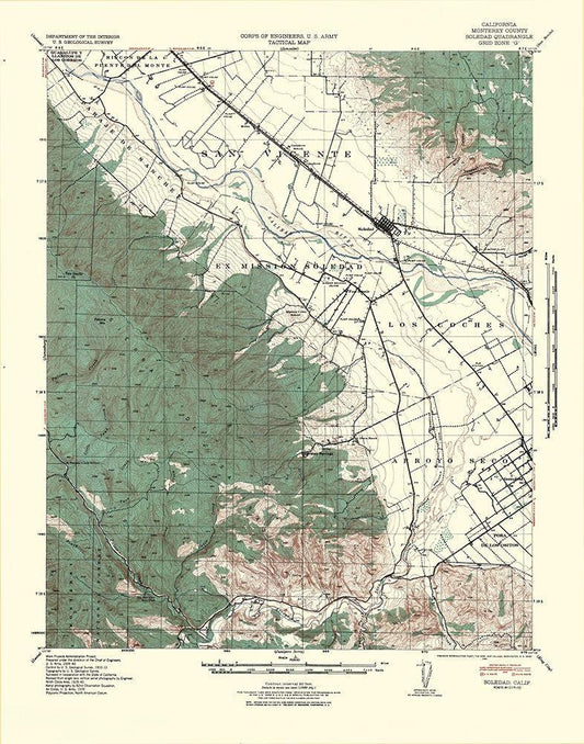 Soledad California Quad - USGS 1940 White Modern Wood Framed Art Print with Double Matting by USGS