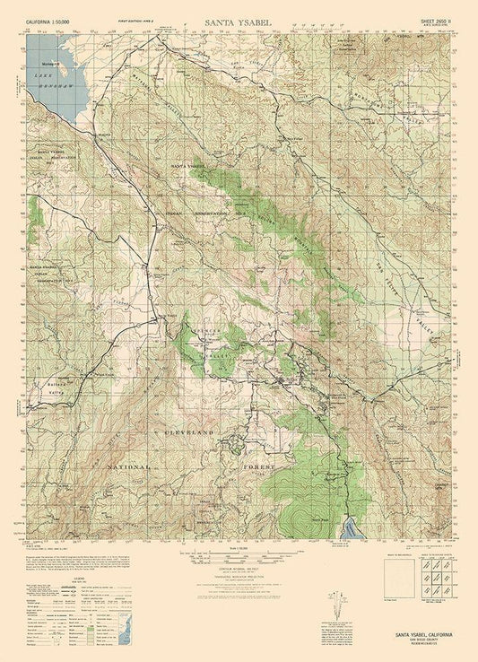 Santa Ysabel Sheet - US Army 1943 White Modern Wood Framed Art Print with Double Matting by US Army