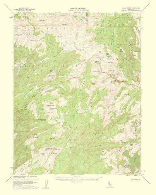 Tower Peak California Quad - USGS 1956 White Modern Wood Framed Art Print with Double Matting by USGS
