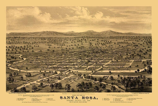 Santa Rosa California - Glover 1876 White Modern Wood Framed Art Print with Double Matting by Glover