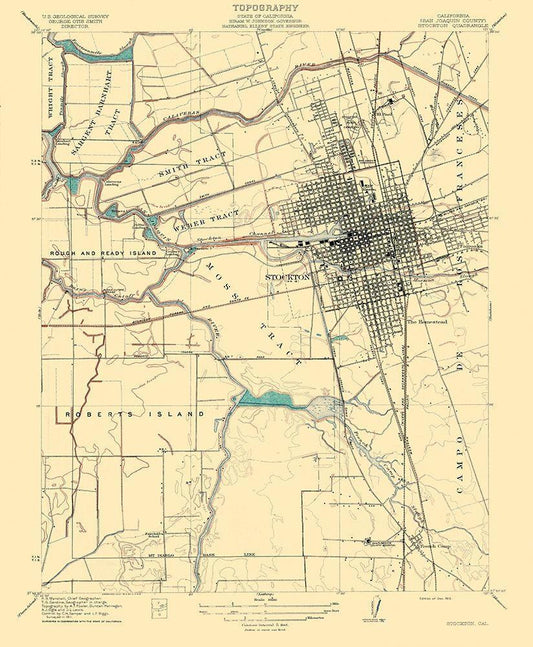Stockton California Quad - USGS 1913 White Modern Wood Framed Art Print with Double Matting by USGS