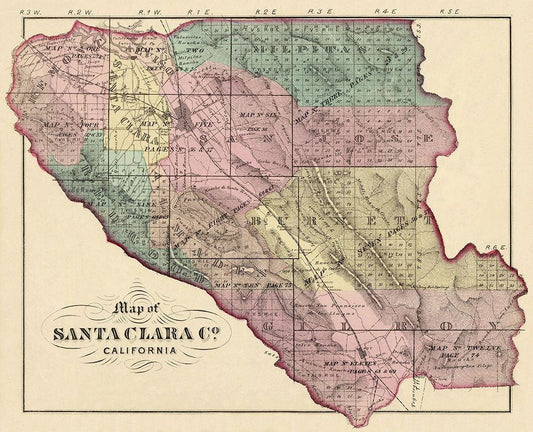 Santa Clara California - Thompson 1876 White Modern Wood Framed Art Print with Double Matting by Thompson