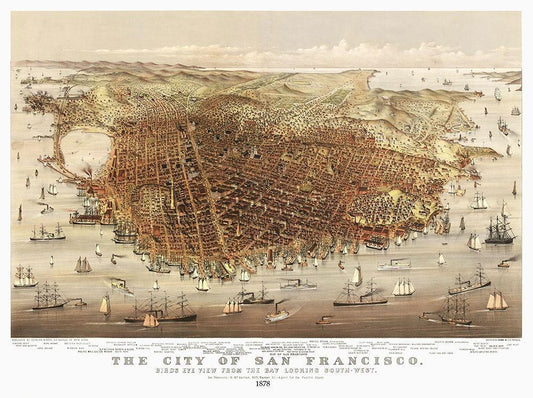 San Francisco California - Currier 1878 White Modern Wood Framed Art Print with Double Matting by Currier