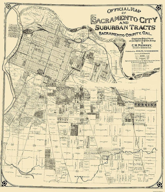 Sacramento California - Anderson 1908 White Modern Wood Framed Art Print with Double Matting by Anderson