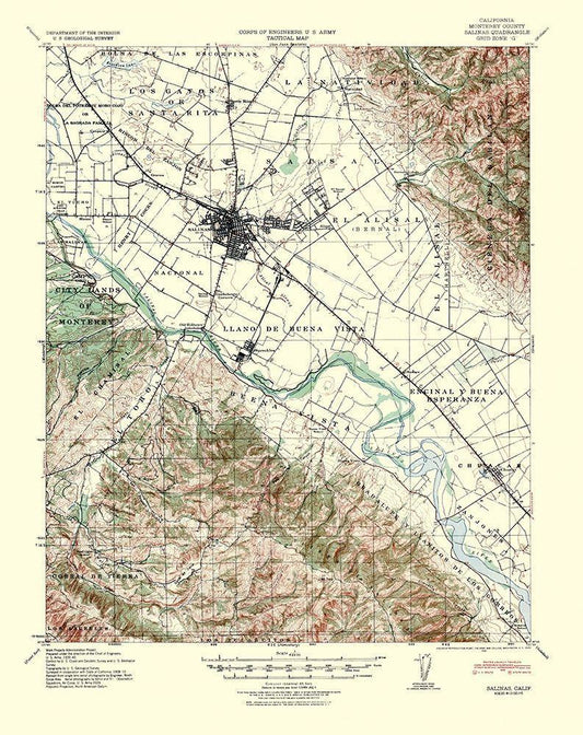 Salinas California Quad - USGS 1940 White Modern Wood Framed Art Print with Double Matting by USGS