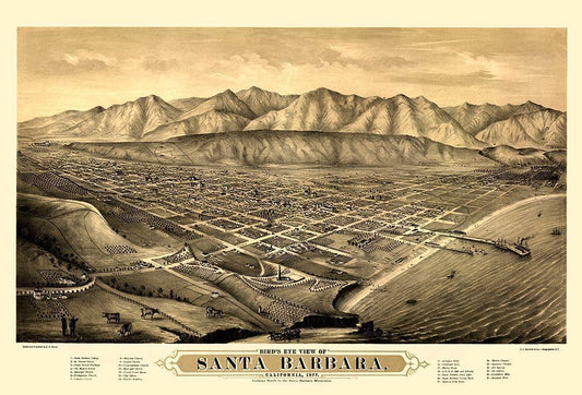 Santa Barbara California Looking North White Modern Wood Framed Art Print with Double Matting by Bancroft