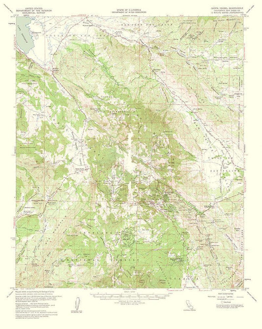 Santa Ysabel California Quad - USGS 1962 White Modern Wood Framed Art Print with Double Matting by USGS