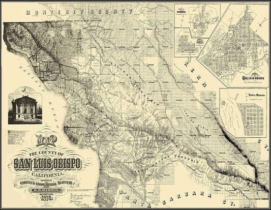 San Luis Obispo California Landowner - Harris 1874 White Modern Wood Framed Art Print with Double Matting by Harris