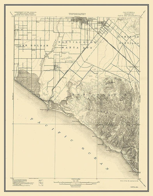 Santa Ana California Quad - USGS 1901 White Modern Wood Framed Art Print with Double Matting by USGS