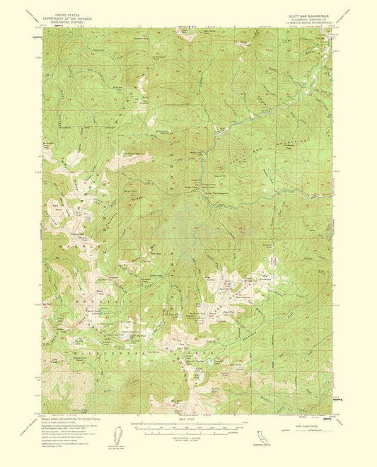 Scott Bar California Quad - USGS 1956 White Modern Wood Framed Art Print with Double Matting by USGS