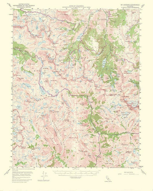 Mt Goddard California Quad - USGS 1953 White Modern Wood Framed Art Print with Double Matting by USGS