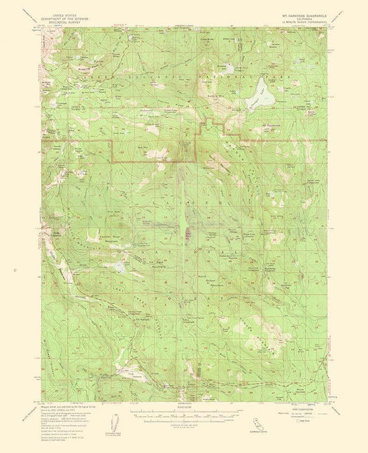 Mt Harkness California Quad - USGS 1953 White Modern Wood Framed Art Print with Double Matting by USGS