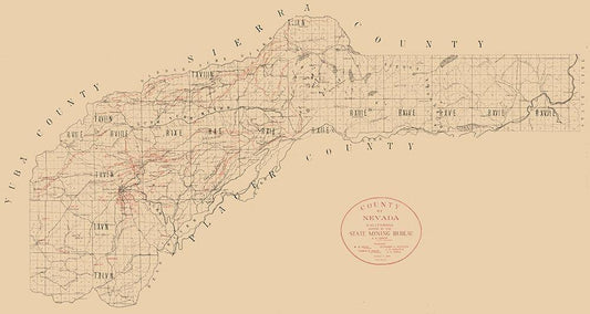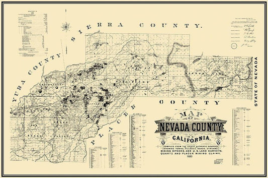 Nevada County California - Hartwell 1880 White Modern Wood Framed Art Print with Double Matting by Hartwell