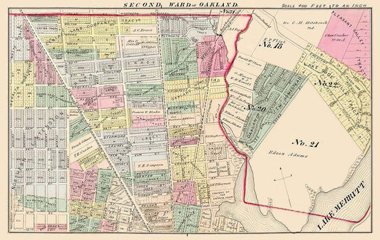 Oakland California Second Ward - Thompson 1878 White Modern Wood Framed Art Print with Double Matting by Thompson