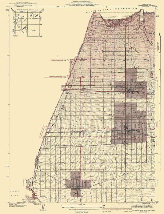 Ontario Vicinity California - USGS 1942 White Modern Wood Framed Art Print with Double Matting by USGS