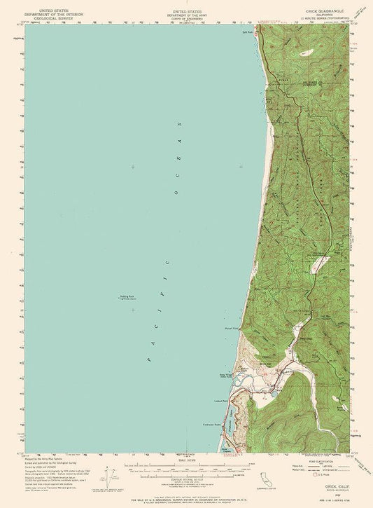Orick California Quad - USGS 1952 White Modern Wood Framed Art Print with Double Matting by USGS