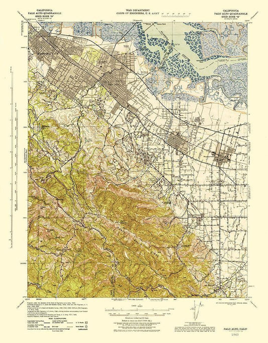Palo Alto California Quad - USGS 1943 White Modern Wood Framed Art Print with Double Matting by USGS
