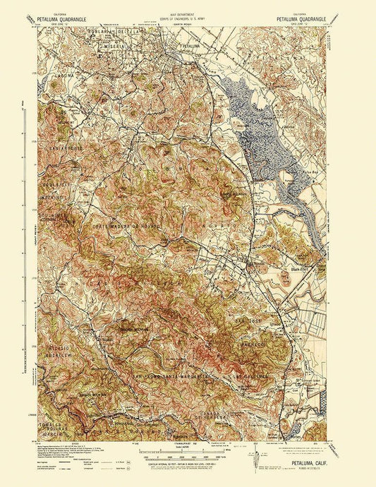 Petaluma California Quad - USGS 1942 White Modern Wood Framed Art Print with Double Matting by USGS