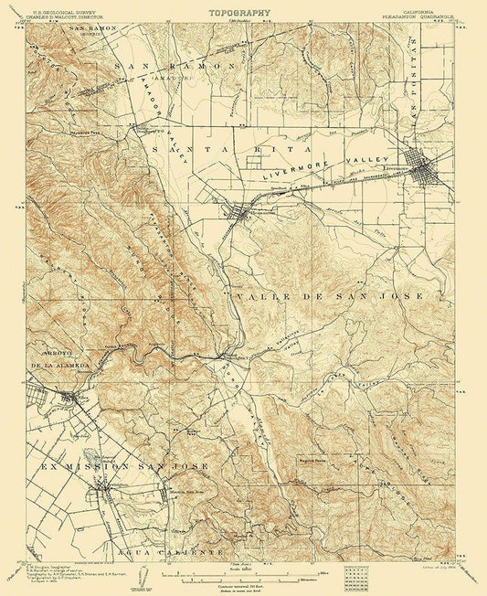 Pleasanton California Quad - USGS 1906 White Modern Wood Framed Art Print with Double Matting by USGS