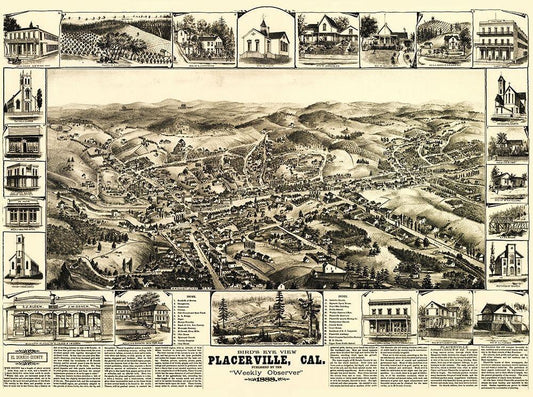 Placerville California - Elliot 1888 White Modern Wood Framed Art Print with Double Matting by Elliot