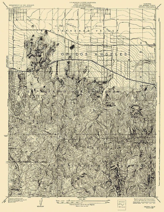 Reseda California Quad - USGS 1928 White Modern Wood Framed Art Print with Double Matting by USGS
