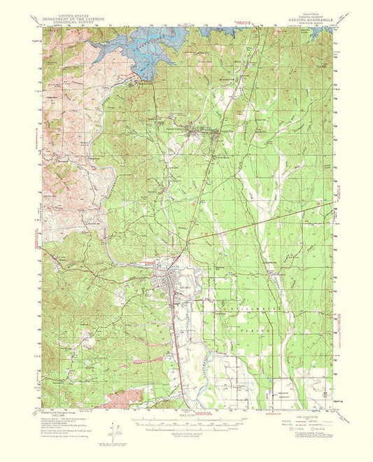 Redding California Quad - USGS 1956 White Modern Wood Framed Art Print with Double Matting by USGS