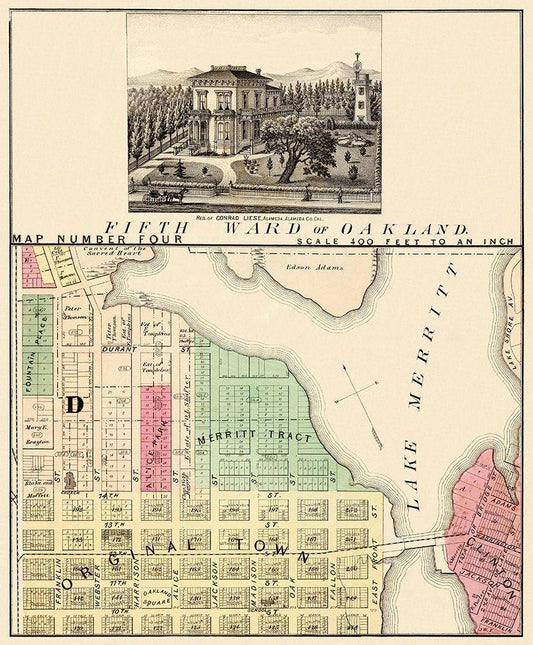 Oakland California Fifth Ward - Thompson 1878 White Modern Wood Framed Art Print with Double Matting by Thompson