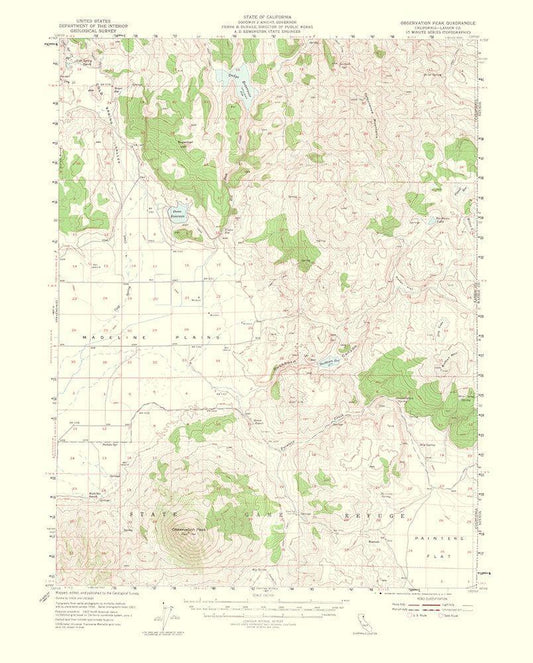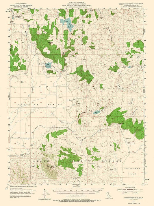 Observation Peak California Quad - USGS 1954 White Modern Wood Framed Art Print with Double Matting by USGS