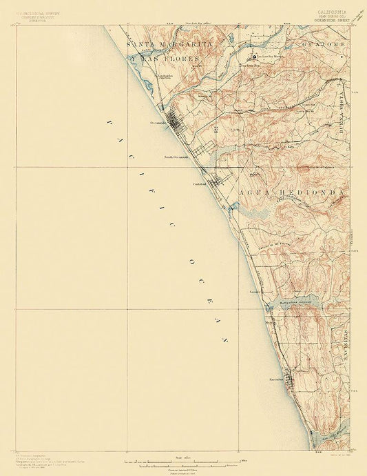 Oceanside California Sheet - USGS 1901 White Modern Wood Framed Art Print with Double Matting by USGS