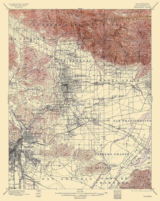 Pasadena California Quad - USGS 1900 White Modern Wood Framed Art Print with Double Matting by USGS