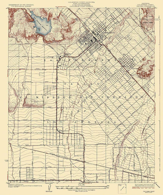 Pacoima California Quad - USGS 1927 White Modern Wood Framed Art Print with Double Matting by USGS