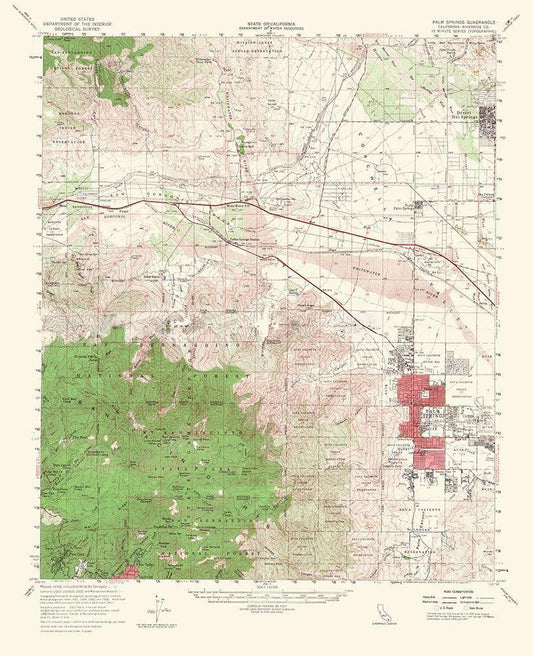 Palm Springs California Quad - USGS 1956 White Modern Wood Framed Art Print with Double Matting by USGS