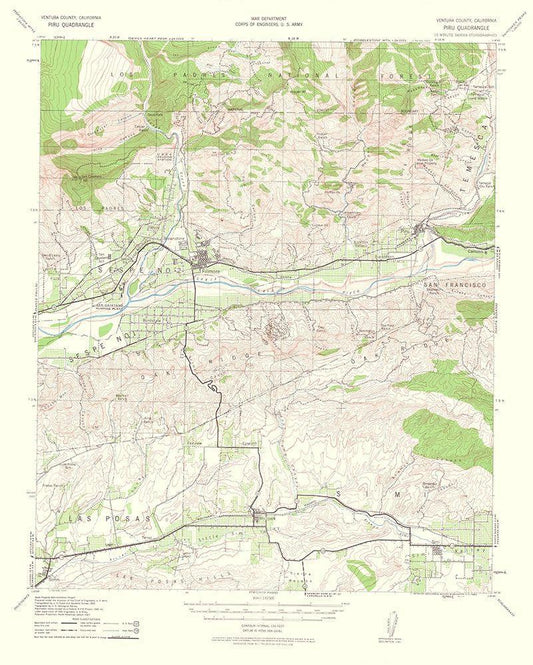 Piru California Quad - USGS 1963 White Modern Wood Framed Art Print with Double Matting by USGS